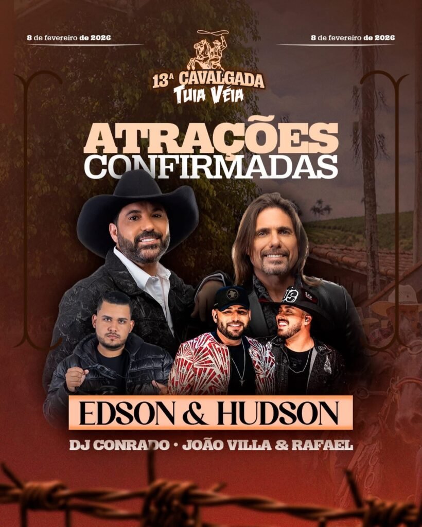 Para 2026, a expectativa é de uma edição ainda mais marcante. Além de Edson & Hudson, dupla que fez história no sertanejo, o evento contará com novas atrações musicais. A dupla João Villa & Rafael, donos do hit “Botada com Pressão”, está confirmada no line-up, e DJ Conrado será responsável por dar o start na festa do Tuia Véia e aquecer o público desde os primeiros momentos do evento.